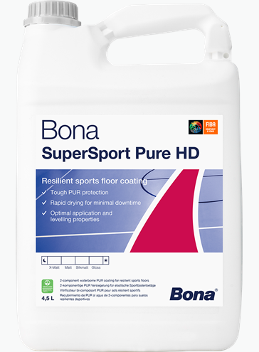 Bona SuperSport Pure HD este un strat de acoperire dur-elastic ce servește drept protecție pe termen lung a suprafețelor, restabilind aspectul și frecarea și simplificând întreținerea de rutină. Constă dintr-o formulă pe bază de apă, transparentă, care nu îngălbenește.
