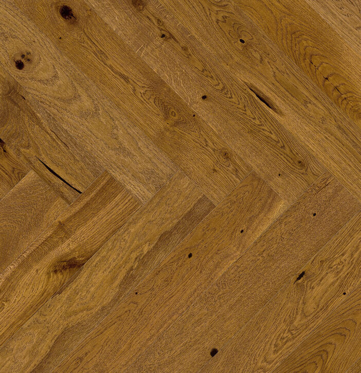 Parchet triplu stratificat din stejar, cu o culoare caldă asemanatoare bronzului antic. Acoperit cu lac mat. Structura lemnului este pusă în evidență cu ajutorul procesului de periere, iar teșirea pe toate cele patru laturi subliniază textura podelei. Disponibil în versiunea cu 1 singură lamelă.
