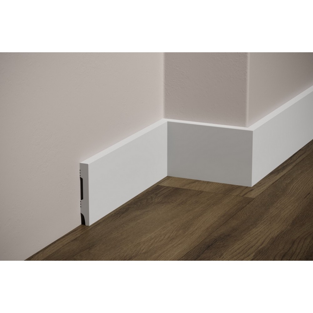 Aceasta plinta se recomanda a fi taiata la unghi de 45 grade, nemaifiind necesare alte piese de imbinare.