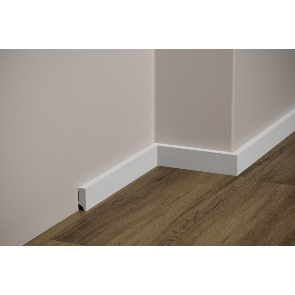 Aceasta plinta se recomanda a fi taiata la unghi de 45 grade, nemaifiind necesare alte piese de imbinare.