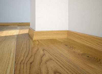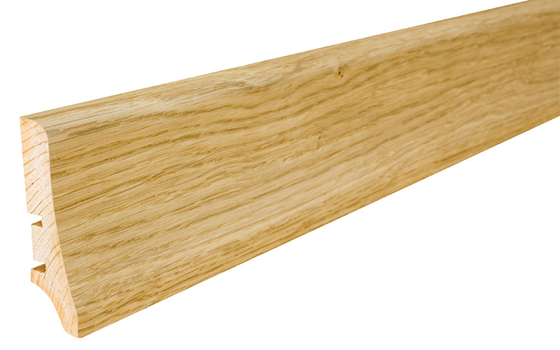 Plintă din lemn de pin stratificat îmbinat în dinți pentru a avea o stabilitate la lungime cu furnir de stejar lacuită.