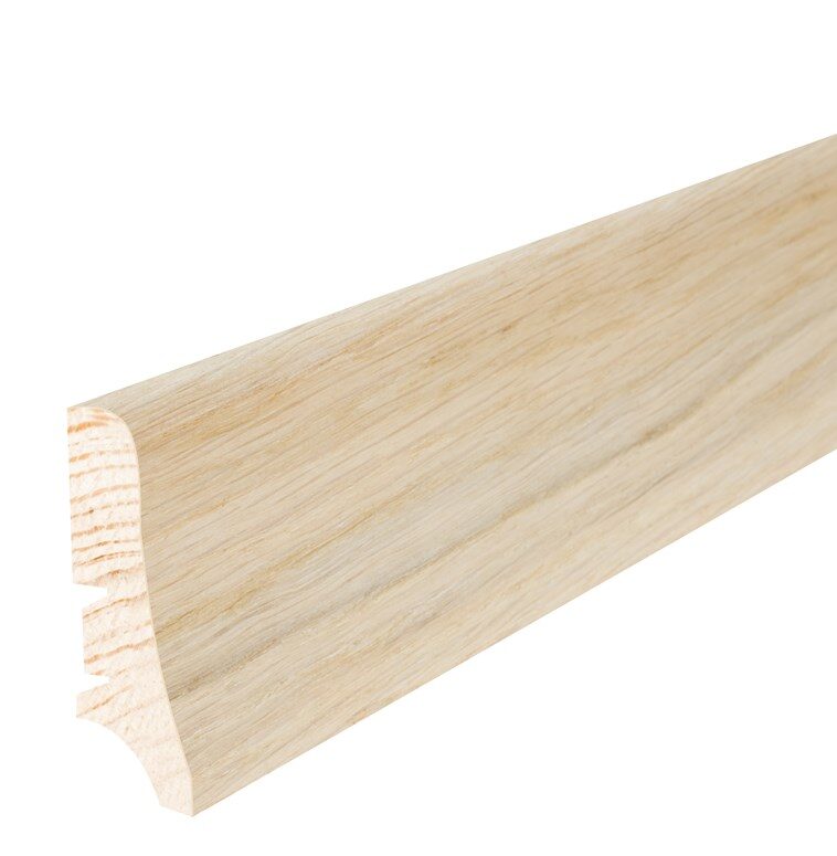 Plintă de pin cu furnir de stejar uleiată. Este extrem de funcțională și stabilă dimensional. Se potrivește perfect cu orice tip de podea.