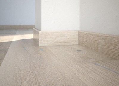 Plintă de pin cu furnir de stejar lacuit. Este extrem de funcțională și stabilă dimensional. Se potrivește perfect cu orice tip de podea.