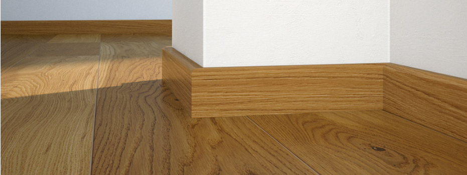 Plintă de pin cu furnir de stejar lacuit. Este extrem de funcțională și stabilă dimensional. Se potrivește perfect cu orice tip de podea.