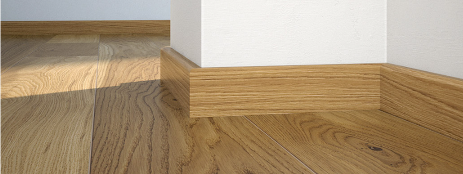 Plintă de pin cu furnir de stejar lacuit. Este extrem de funcțională și stabilă dimensional. Se potrivește perfect cu orice tip de podea.