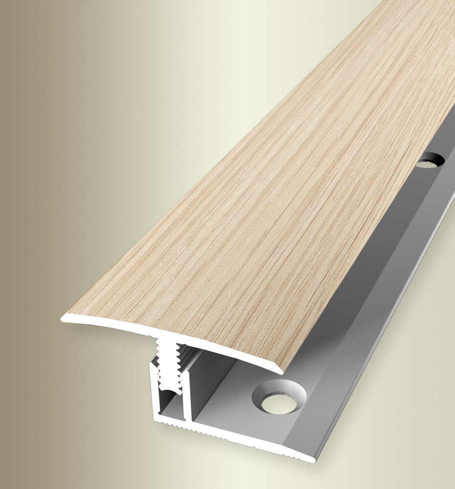 Profil de trecere din aluminiu Küberit 558  cu suprafață netedă, pentru pardoseli de 7–12 mm. Soluție elegantă pentru îmbinarea parchetului, laminatului sau LVT.