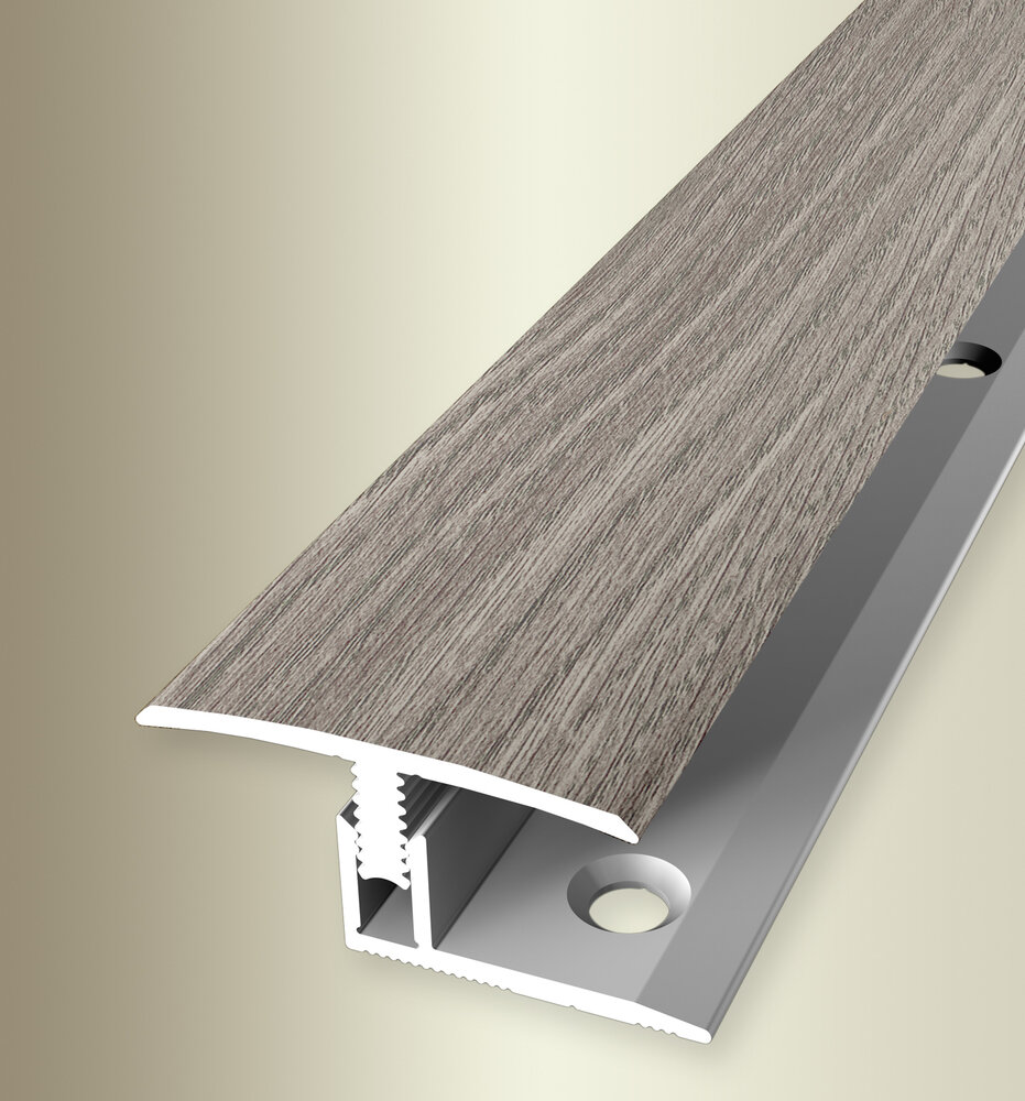 Profil de trecere din aluminiu Küberit 558  cu suprafață netedă, pentru pardoseli de 7–12 mm. Soluție elegantă pentru îmbinarea parchetului, laminatului sau LVT.